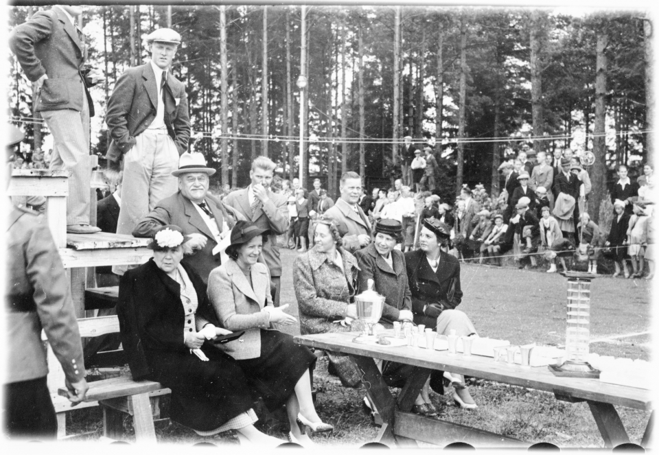 Anders Kramer, hänestä oik. Folke Paulson. Edessä 2. oikealla Helmi Albrecht ja 3. oikealla rva Pfahler. Vasemmalla rva Kramer?, 2. vas. edessä rva Liliu ja 1. oikealla rva Glöersen.