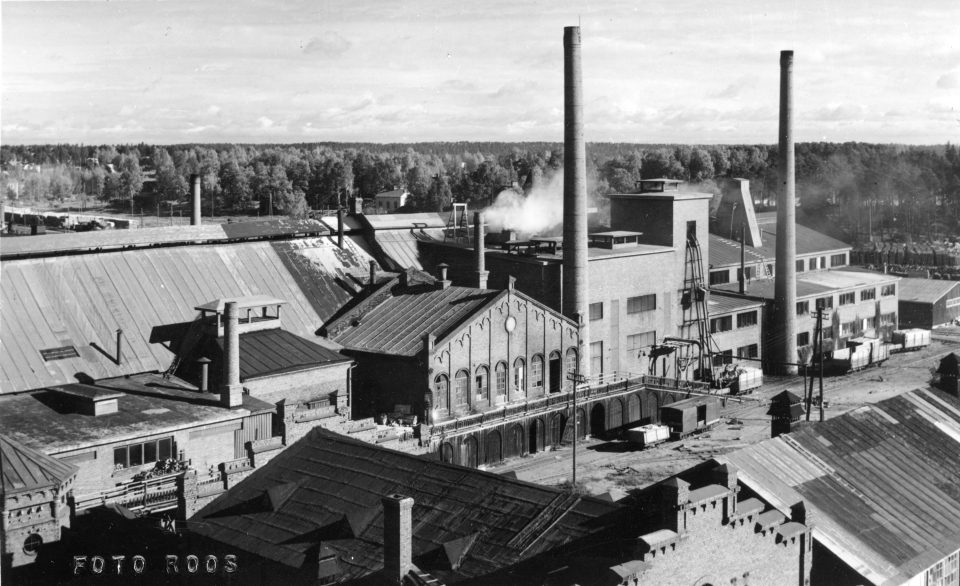 Lasitehdas konepajan katolta nähtynä 1940-50 luvun vaiheilla