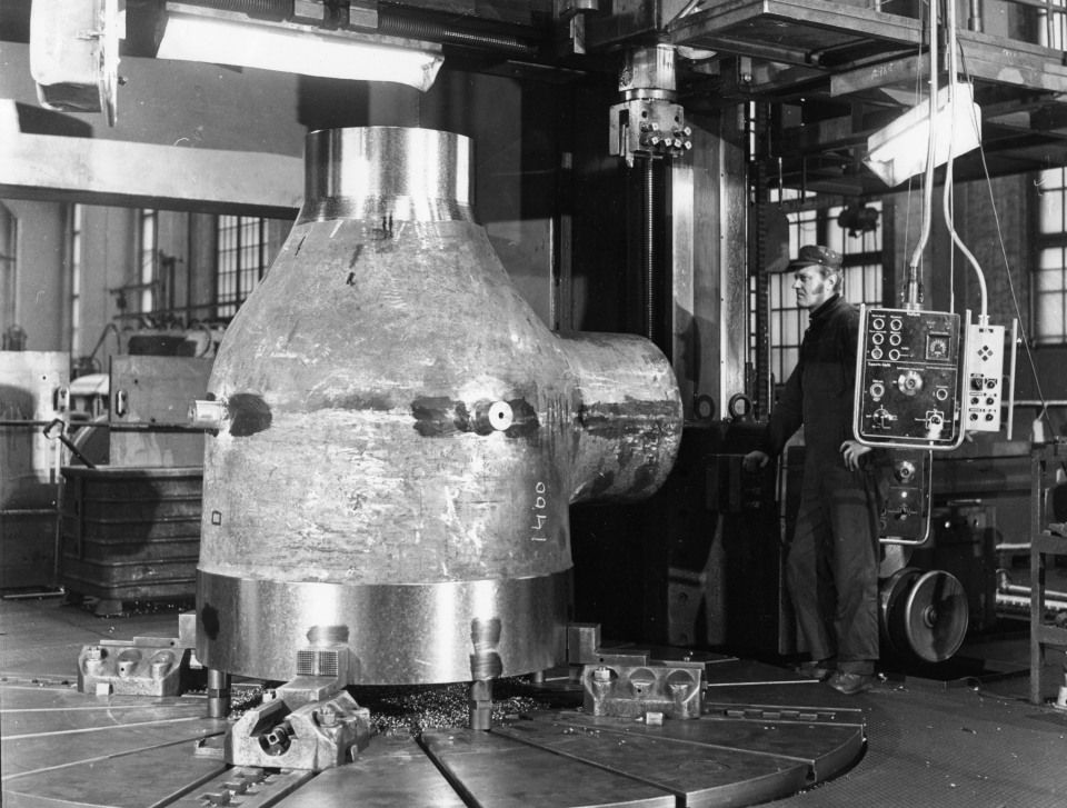 Atomivoimalan pääkiertopumppu aarporalla vuonna 1973.