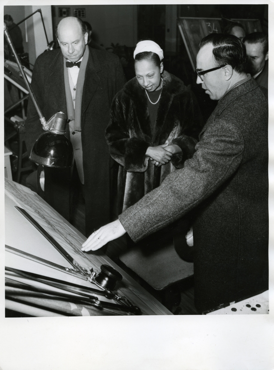 Vasemmalla johtaja Börje Ahlström, keskellä Josephine Baker ja oikealla Viktor Sergejeff, vuonna 1958.