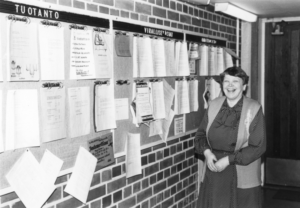 Vuokko Autio, luottamusnainen, yhdistyksen puheenjohtaja 1980-luvun alussa Kartonkitehtaalla.
