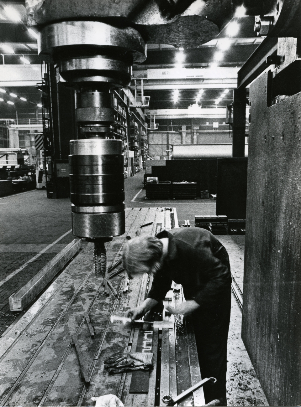 Pylvänporakoneen kara pituushöyläpöytä 1960-luvulla