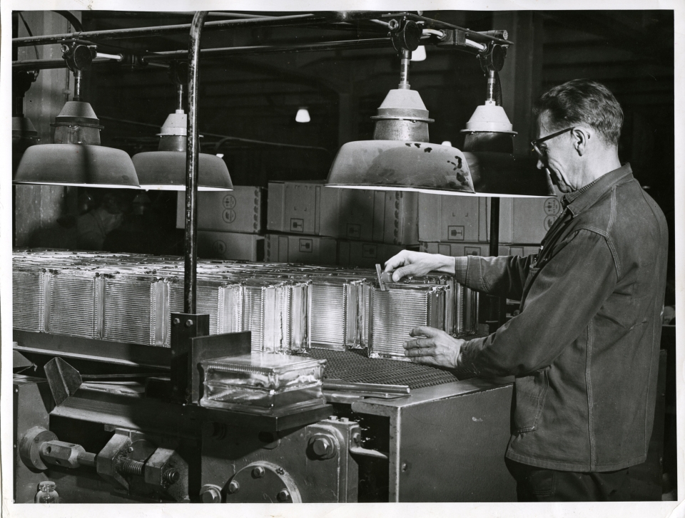 Tarkastajana Johannes Pulkki. Lasitiilien valmistus alkoi 1940-luvun alussa. Lasitiilien valmistus lopetettiin 1968.
