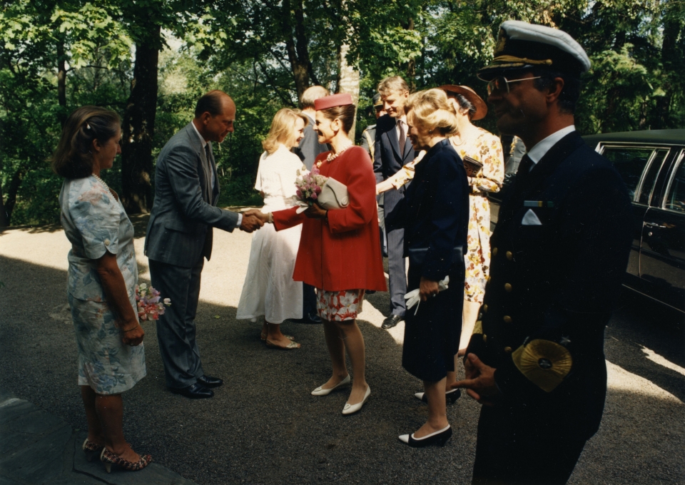 Ruotsin kuningasparin vierailu ja yöpyminen Hovissa. Vastassa Turo KJ Tukiainen vaimonsa kanssa.