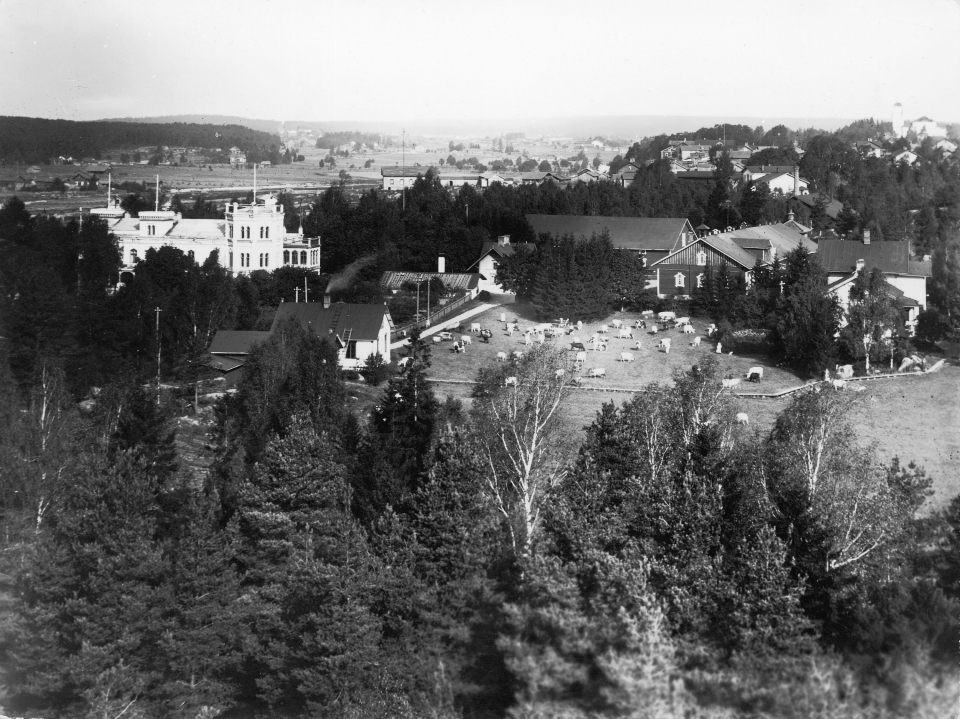 Karhulan hovissa oli 1900-luvun alussa karjaa niin kuin kartanossa pitääkin. Lehmien ammunta ja navetan haju sekoittuivat Helilässä lintujen lauluun ja kesän tuoksuihin. Kuvan oikeassa laidassa häämöttää Kymin kirkko ja Kymijoki virtaa näkymättömissä kartanon takana. Hovin mallina oli rouva Fanny Ruthin veljen omistama Karlbergin kartano aulangolla. Tyyli on haettu Keski-Euroopasta. Tuon aikainen kartanon väki saattaisi olla hieman kummissaan, jos joutuisivat Karhulan nykyiseen keskustaan. Omavaraisessa talossa ei kauppojen paljoutta varmasti ymmärtäisi sen enempää Fanny-rouva kuin itse patruuna William Ruth. Kartanon pihapiirikään ei ole enää ihan samanlainen kuin itse tuohon aikaan, jalavia on kaatunut ja palmut ovat kadonneet. Rahvaskin oikaisee nyt iltalenkillään kartanon portaan vierestä ja Ruthin herrasväen salissa juhlitaan useammin kuin koko talon historian aikana konsanaan.
