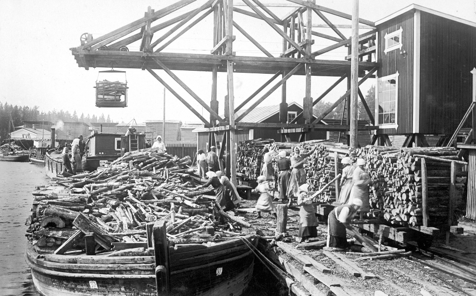 Ahkerat naiset tyhjensivät ripeästi isonkin ropsijaalan. Kuva 1910-luvulta.